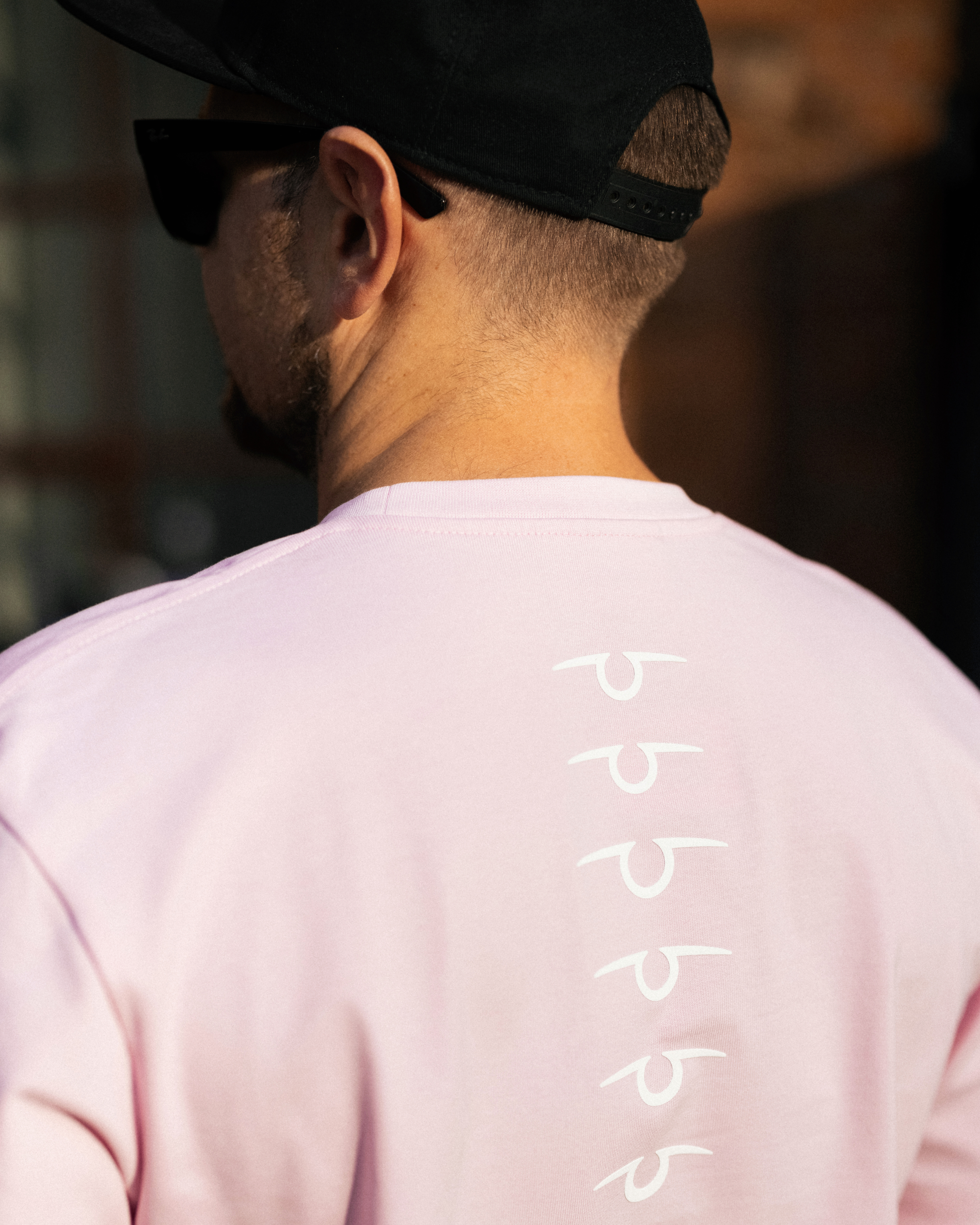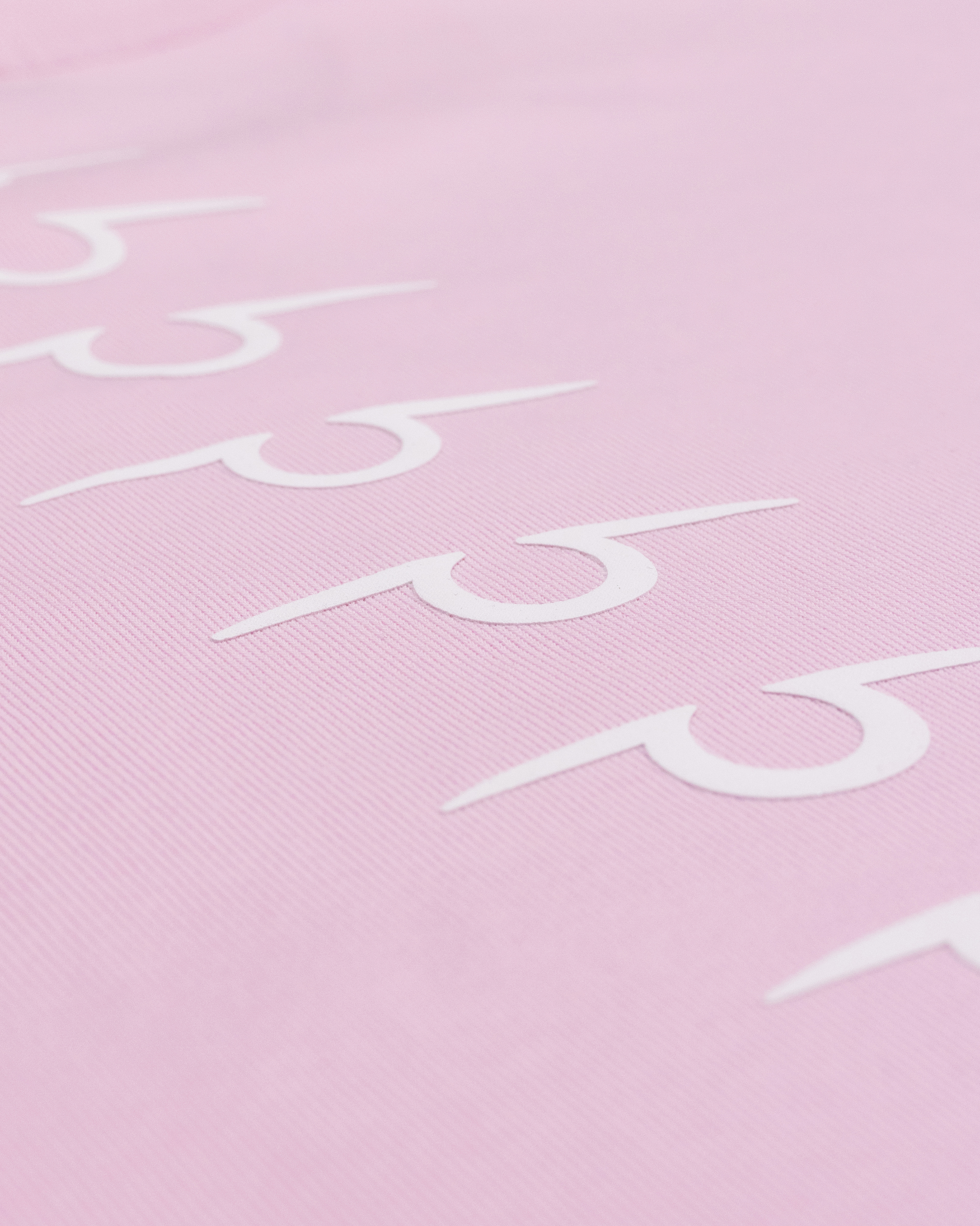 Принт выполнен объемной шелкографией. Поверхность читается на свету и на ощупь — как покрытие на детали. Розовая версия держит принцип: чистый фон и точная графика.